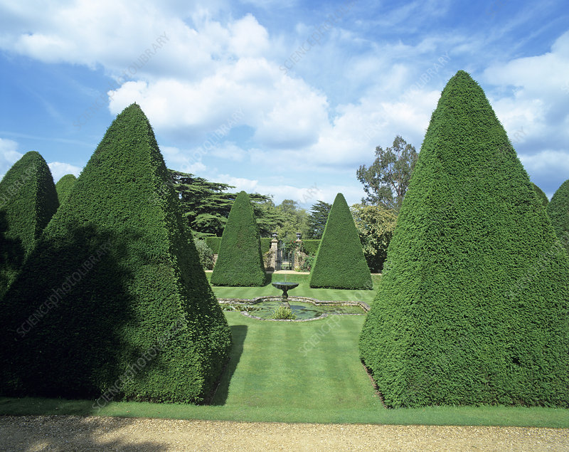 - English yew shaped into pyramids up to 2 meters tall